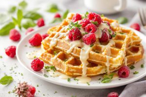 Gaufres salées aux rillettes de saumon, avocat et oeufs de saumon